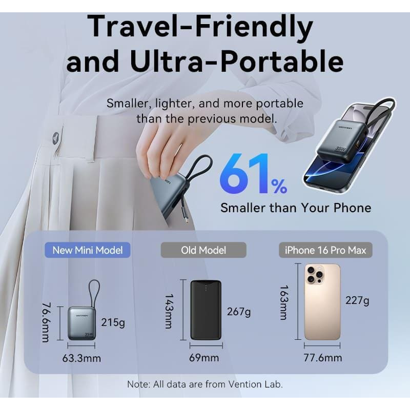 Vention POWER BANK USB 10000MAH 35W/MINI GRAY FHEH0 VENTION