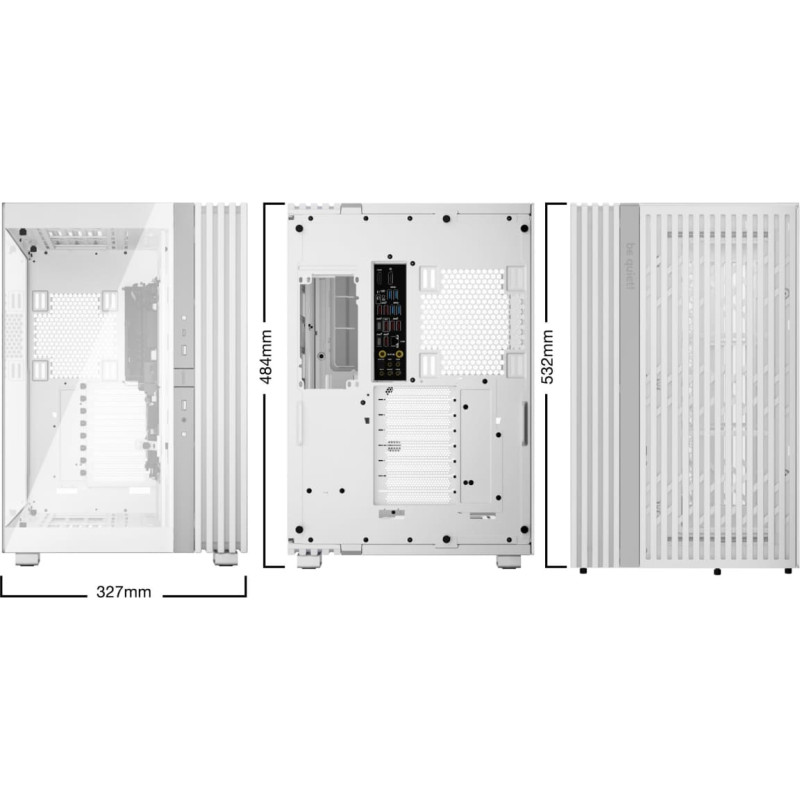 summary: be quiet! LIGHT BASE 900 DX White. Form factor: Full Tower, Type: PC, Product colour: White. Supported power supply form factors: ATX, PS2. Side fans diameters supported: 120,140 mm, Rear fans diameters supported: 120,140 mm, Top fans diameters supported: 120,140 mm. Supported HDD sizes: 2.5,3.5". Width: 327 mm, Depth: 532 mm, Height: 484 mm