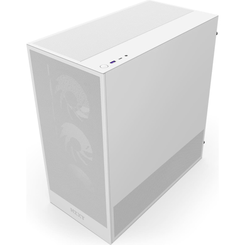 summary: NZXT H5 Flow RGB. Form factor: Midi Tower, Type: PC, Product colour: White. Front fans installed: 3x 120 mm, Front fans diameters supported: 120,140 mm, Side fans diameters supported: 120,140 mm. Supported HDD sizes: 2.5,3.5". Width: 225 mm, Depth: 430 mm, Height: 465 mm