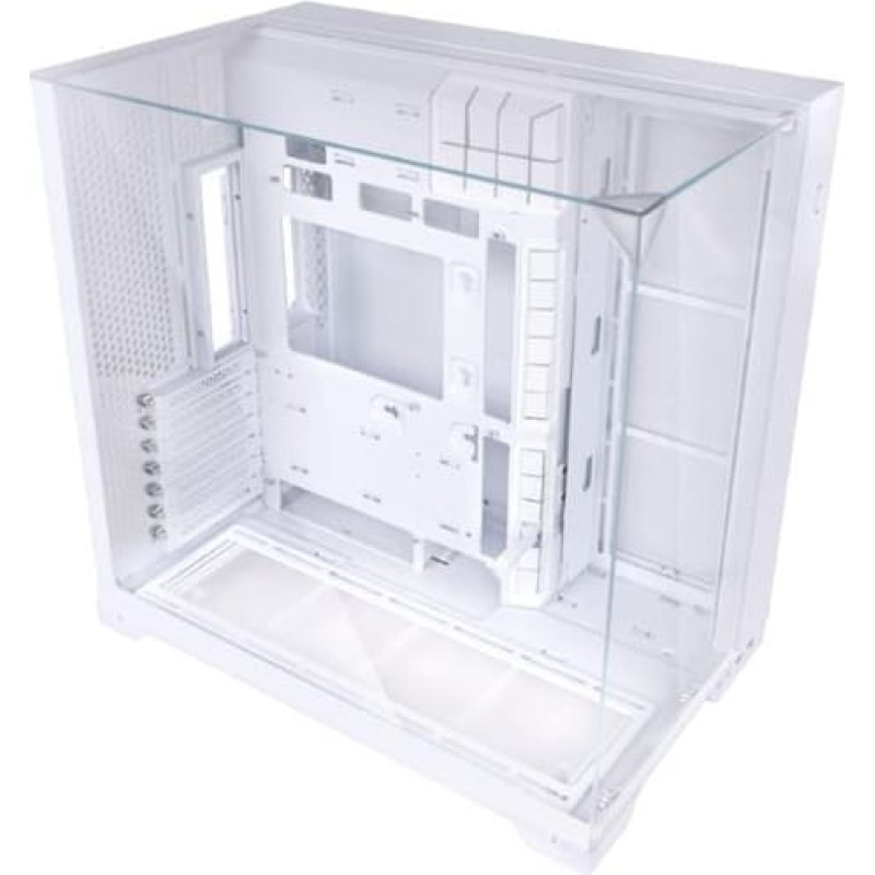 summary: Lian Li 011 Vision Compact. Form factor: Tower, Type: PC, Product colour: White. Side fans diameters supported: 120 mm, Rear fans diameters supported: 120 mm, Top fans diameters supported: 120,140 mm. Supported HDD sizes: 2.5,3.5", SSD form factor: 2.5". Width: 287.5 mm, Depth: 447.5 mm, Height: 446.4 mm