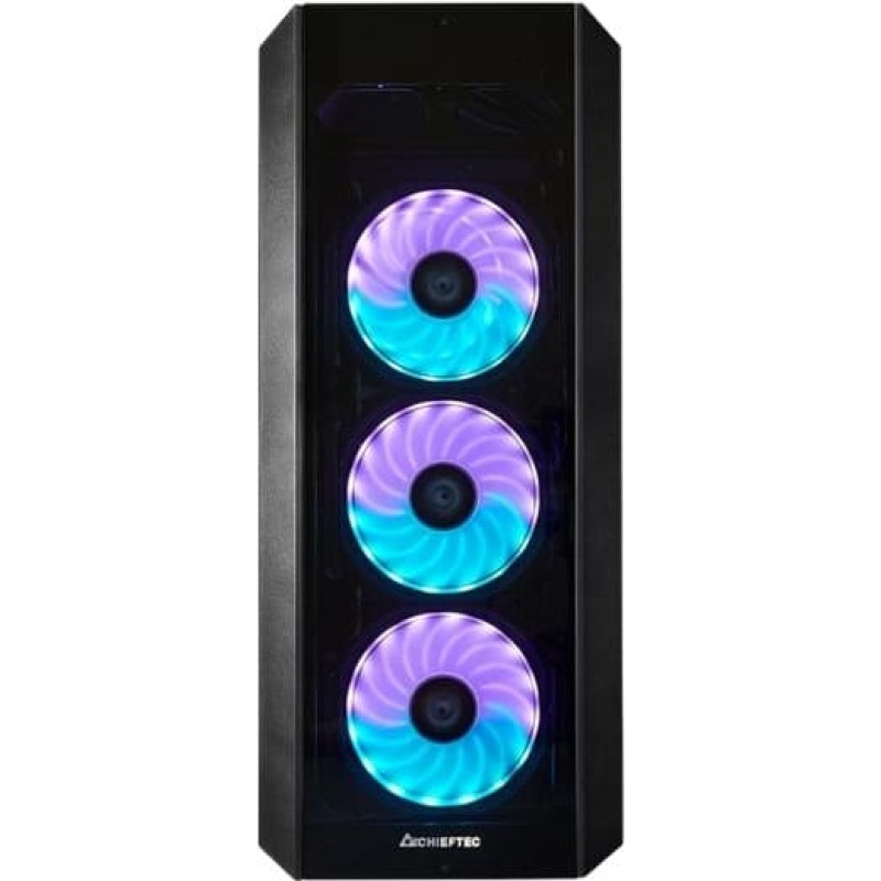 summary: Chieftec SCORPION 3. Form factor: Midi Tower, Type: PC, Product colour: Black. Front fans installed: 3x 120 mm, Front fans diameters supported: 120,140 mm, Rear fans installed: 1x 120 mm. Supported HDD sizes: 2.5,3.5". Width: 202.5 mm, Depth: 436 mm, Height: 490 mm. Cables included: SATA, Package weight: 8.5 kg