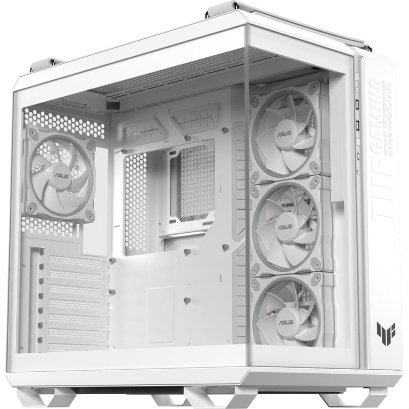 summary: ASUS TUF GAMING GT502 Horizon TG ARGB White. Form factor: Midi Tower, Type: PC, Product colour: White. Side fans installed: 3x 120 mm, Rear fans installed: 1x 120 mm, Rear fans diameters supported: 120 mm. Supported HDD sizes: 2.5,3.5". Width: 285 mm, Depth: 450 mm, Height: 446 mm. Package width: 380 mm, Package depth: 525 mm, Package height: 557 mm