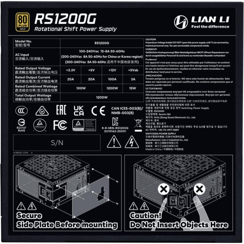 Lian Li Power Supply|LIAN LI|ATX|PC|100 - 240 V|1200 W|G9P.RS1200G.BH00.EU