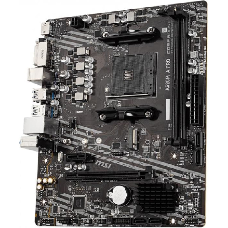 MSI Mainboard|MSI|AMD A520|SAM4|MicroATX|1xPCI-Express 3.0 1x|1xPCI-Express 3.0 16x|1xM.2|Memory DDR4|Memory slots 2|1xDVI|1xHDMI|2xAudio-Out|2xUSB 2.0|4xUSB 3.2|1xRJ45|A520M-APRO