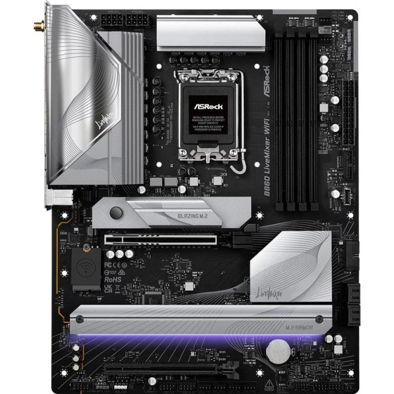 Asrock Mainboard|ASROCK|Intel B860 Express|LGA1851|ATX|Memory DDR5|Memory slots 4|1xPCI-Express 4.0 16x|1xPCI-Express 5.0 16x|1xM.2|1xHDMI|1xAudio-Out|1xMicrophone|6xUSB 2.0|6xUSB 3.2|1xUSB-C w/Thunderbolt|1xOptical S/PDIF|1xRJ45|B860LIVEMIXERWIFI