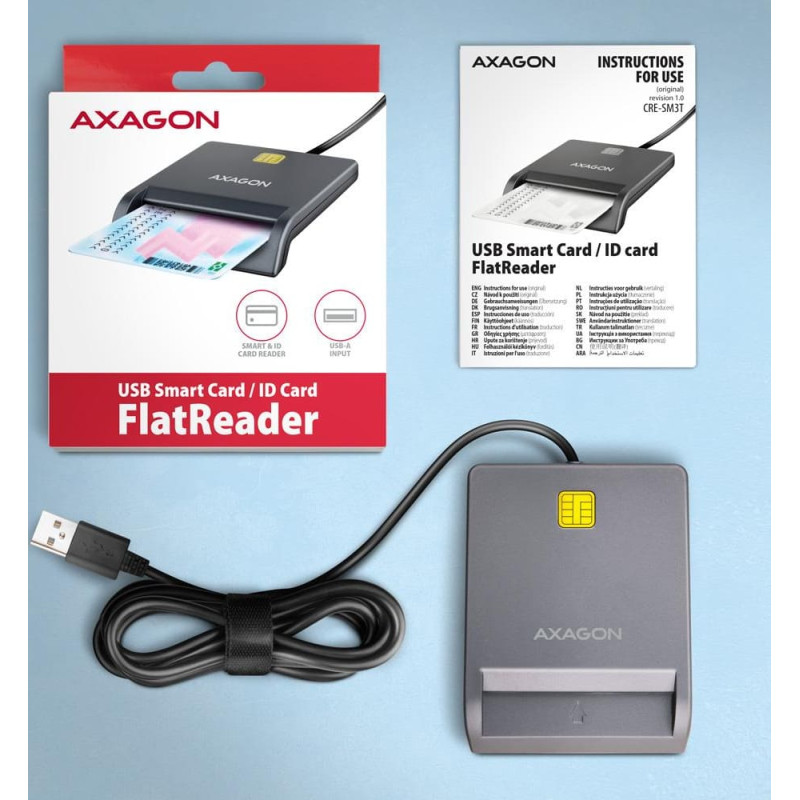 Axagon CARD READER FLAT SMARTCARD/ID/USB2.0 1.3M CRE-SM3T AXAGON
