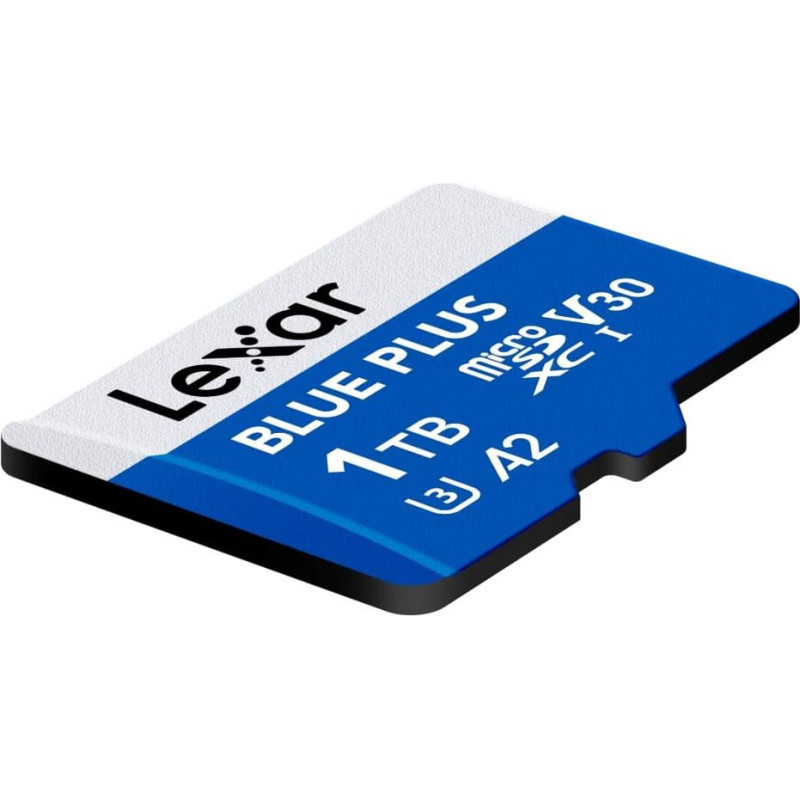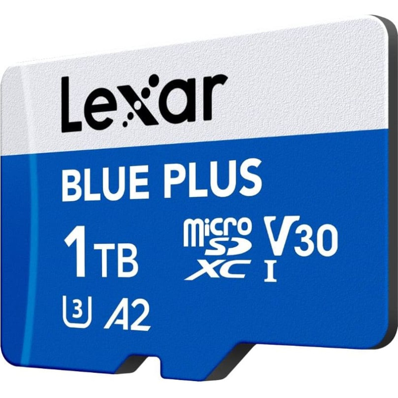 summary: Lexar BLUE PLUS. Capacity: 1 TB, Flash card type: MicroSDXC, Internal memory type: UHS-I, Read speed: 170 MB/s, UHS Speed Class: Class 3 (U3), Video Speed Class: V30. Protection features: Drop proof, Magnet proof, Shock resistant, Temperature proof, Vibration proof, Waterproof, X-ray..., Product colour: Blue