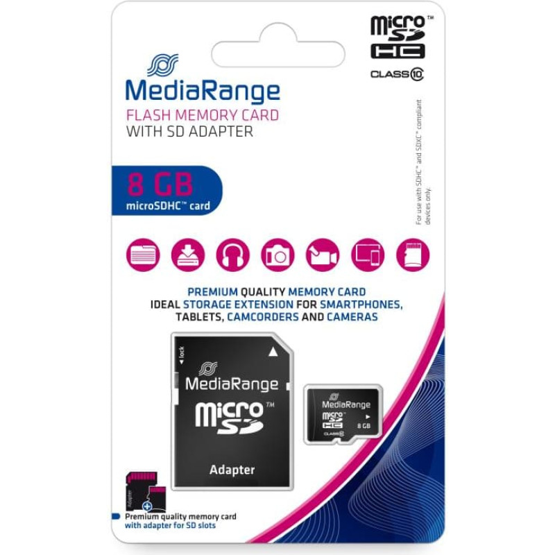 Mediarange MEMORY MICRO SDHC 8GB C10/W/ADAPTER MR957 MEDIARANGE