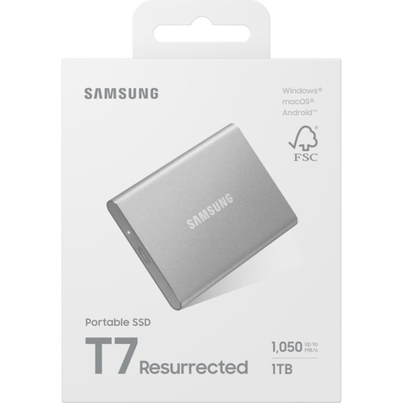 summary: Samsung MU-PD1T0G/WW. SSD capacity: 1 TB. USB connector: USB Type-C, USB version: 3.2 Gen 2 (3.1 Gen 2). Read speed: 1050 MB/s, Write speed: 1000 MB/s. Data transfer rate: 10 Gbit/s. Password protection. Product colour: Silver