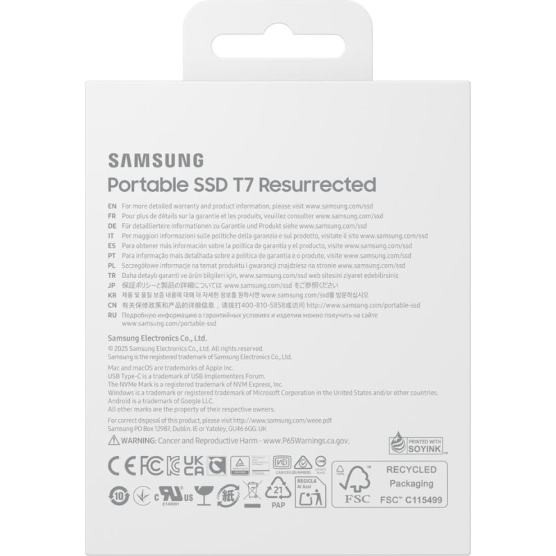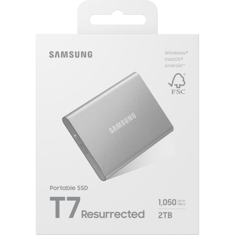 summary: Samsung MU-PD2T0G/WW. SSD capacity: 2 TB. USB connector: USB Type-C, USB version: 3.2 Gen 2 (3.1 Gen 2). Read speed: 1050 MB/s, Write speed: 1000 MB/s. Data transfer rate: 10 Gbit/s. Password protection. Product colour: Silver
