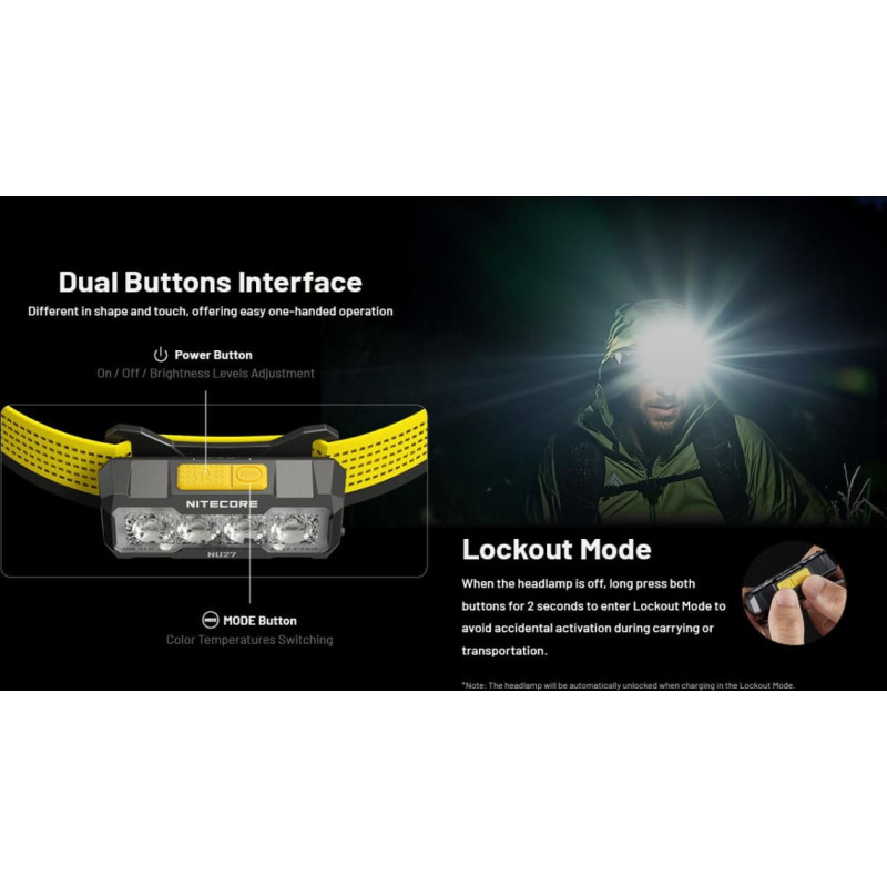 BRIGHT HEADLAMP- The NU27 headlamp is capable of emitting 600 lumens with a max beam distance of 123 m.