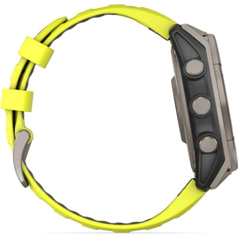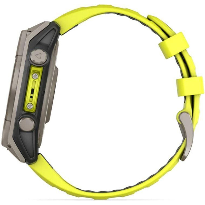 Sapphire, Titanium with Amp yellow/graphite silicone band