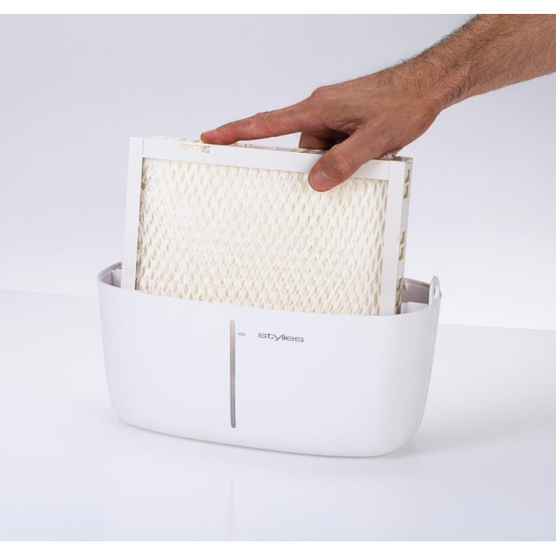 In addition to all the features offered by its predecessor, the ALAZE, the Pro version also features a WiFi-based app control function. You can operate it from anywhere, and the app even reminds you to change the Clean Cube or filter cartridge when needed. Of course, the ALAZE PRO also includes the patented DAST system - Direct Airstream Technology. This means 30% more power with 30% less energy consumption. The light indicator on the front provides information about the air quality in your environment or when it's necessary to refill the water. The dishwasher-safe housing also makes handling and cleaning very convenient. In short, the ALAZE PRO offers everything your heart desires! Manufacturer Website: https://www.stylies.com/en/verdunster-evaporator-alaze-pro |