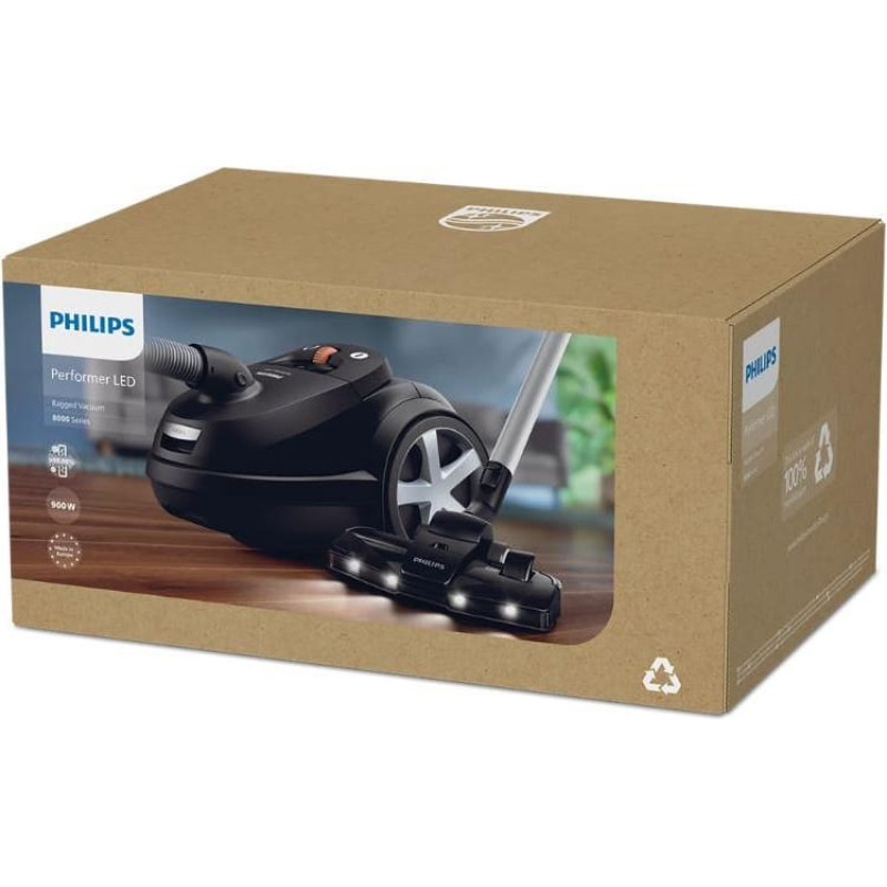 With the Philips Performer LED 8000 series bagged vacuum cleaner, your floors will be cleaner than ever before. The TriActive+ LED nozzle with innovative floor light technology helps you find the smallest dust particles, and with a 900 W motor power, they will be sucked up in no time.