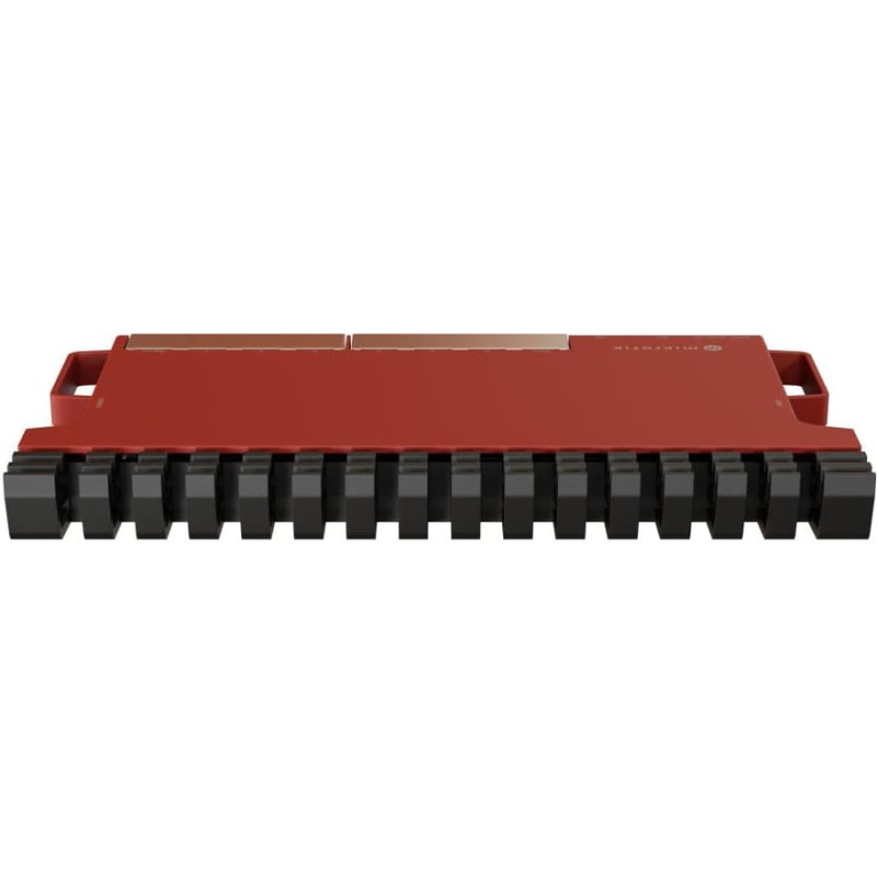 The new enclosure is a spectacular innovation on its own. It’s the same form-factor you might have seen with our highly sought-after RB5009 devices. It has several extremely useful properties. First of all, the case acts as a massive heat-sink, protecting your setups from overheating. But here’s the fun part: it comes with everything you need to fit up to four of these routers in a single 1U rackmount space.