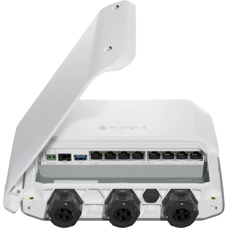 An outdoor version of our best-selling heavy-duty PoE router. Extensive power redundancy for the best price! 7x Gigabit Ethernet ports, 1x 2.5 Gigabit Ethernet, 10G SFP+, 1GB of RAM, 1GB NAND, modern quad-core CPU, 9 (!) powering options, durable IP66 waterproof enclosure.