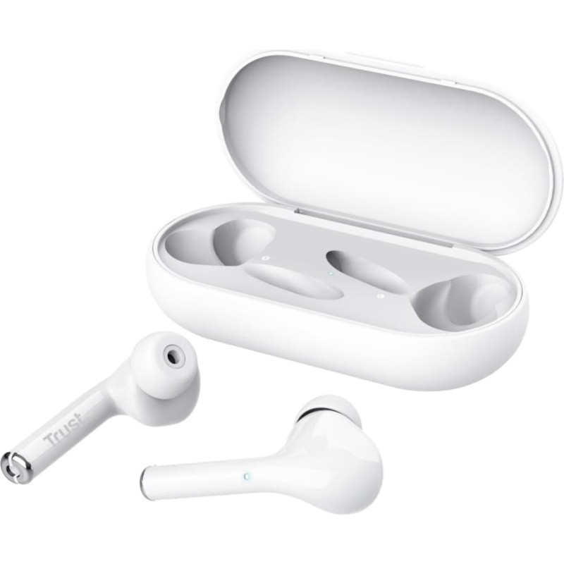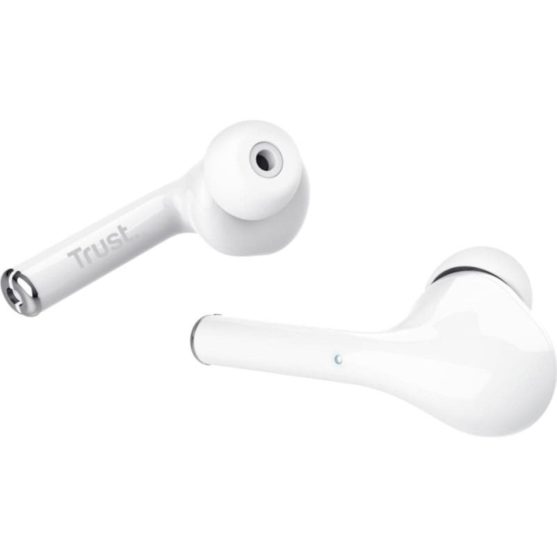 summary: Trust Nika. Product type: Headset. Connectivity technology: True Wireless Stereo (TWS), Bluetooth. Recommended usage: Calls/Music. Headphone frequency: 20 - 20000 Hz. Wireless range: 10 m. Weight: 60 g. Product colour: White