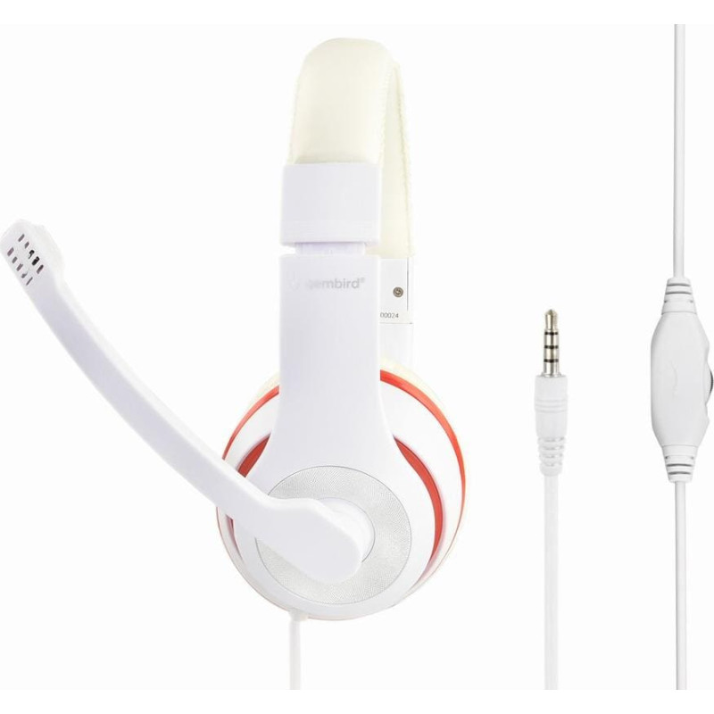 summary: Gembird MHS-03-WTRD. Product type: Headset. Connectivity technology: Wired. Recommended usage: Calls/Music. Headphone frequency: 20 - 20000 Hz. Cable length: 1.8 m. Weight: 200 g. Product colour: Red, White