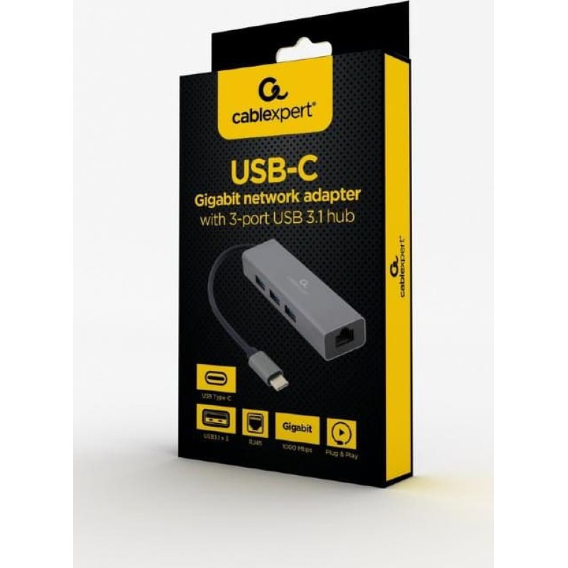 Gembird I/O ADAPTER USB-C TO LAN RJ45/USB HUB A-CMU3-LAN-01 GEMBIRD