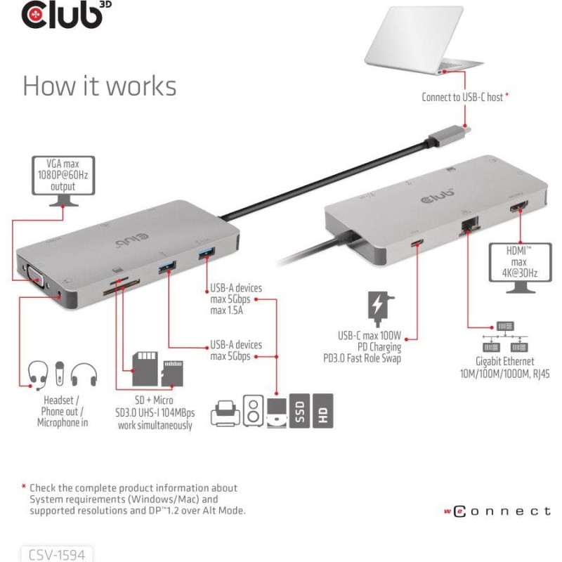 USB Gen1 Type-C 9-in-1 hub with HDMI, VGA, 2x USB Gen1 Type-A, RJ45, SD/Micro SD card slots and USB Gen1 Type-C Female port Manufacturer Website: https://www.club-3d.com/en/detail/2585/usb_gen1_type_c_9_in_1_hub_with_hdmi_vga_2x_usb_gen1_type_a_rj45_sd-micro_sd_card_slots_and_usb_gen1_type_c_female_port/ |