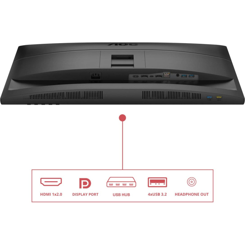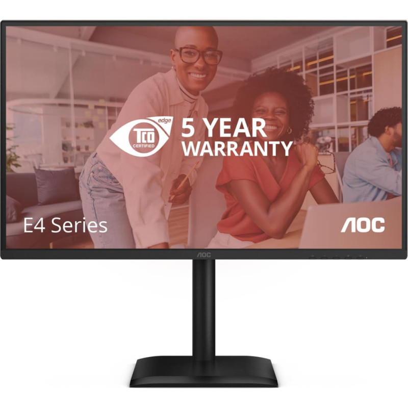 summary: AOC E4 Q27E4CV. Display diagonal: 68.6 cm (27"), Display resolution: 2560 x 1440 pixels, HD type: Quad HD, Display technology: LED, Response time: 4 ms, Native aspect ratio: 16:9, Viewing angle, horizontal: 178°, Viewing angle, vertical: 178°. Built-in speaker(s). Built-in USB hub, USB hub version: 2.0 / 3.2 Gen 1 (3.1 Gen 1). VESA mounting, Height adjustment. Product colour: Black