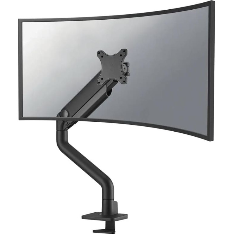 The Neomounts DS70S-950BL1 NEXT One is a full motion desk mount for screens up to 49". The DS70S-950BL1 is a true all-in one solution for small to large displays. The NEXT One features a strengthened head specifically designed to also support curved ultra-wide screens and features a higher maximum weight capacity up to 18 kg (curved 15 kg). The versatile tilt (180°), rotate (360°) and swivel (180°) technology allows the mount to change to any viewing angle to fully benefit from the capabilities of the screen. Additionally, the mount has gas spring height adjustment (20-52 cm) and depth adjustment (8,8-62,5 cm), to create the perfect working position. The DS70S-950BL1 features the nifty 180° stop mechanism, that prevents the mount from making contact with the wall or separation panel when installed near it. The smart cable management system ensures orderly routing of the cables. The black VESA plate of the NEXT One integrate stylishly with the black back of your screen. The DS70S-950BL1 is suitable for screens that meet VESA hole pattern 75x75 or 100x100 mm. For non-standard hole patterns, Neomounts has various optional VESA adapter plates available. The monitor arm is equipped with a Quick-release VESA system and comes with both a topfix clamp and grommet for quick and easy installation. Manufacturer Website: https://www.neomounts.com/desk/monitor-arms/ds70s-950bl1-neomounts-monitor-arm-desk-mount/ |