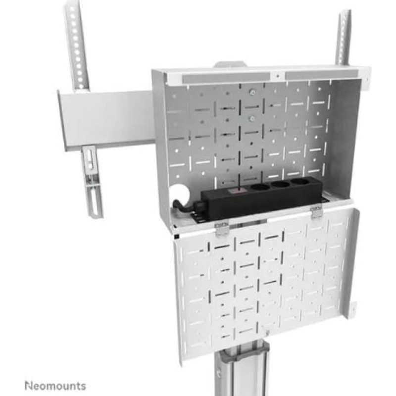 The Neomounts Select FL50S-825WH1 is a mobile floor stand for flat screens up to 75" with a maximum weight capacity of 70 kg. The floor stand is manually adjustable in height (114,5-153,5 cm), as well as the bracket head. A lockable, ventilated hardware compartment with cable opening is included and optional for installation (both portrait and landscape). Manufacturer Website: https://www.neomounts.com/floor/trolleys/fl50s-825wh1-neomounts-select-floor-stand/ |