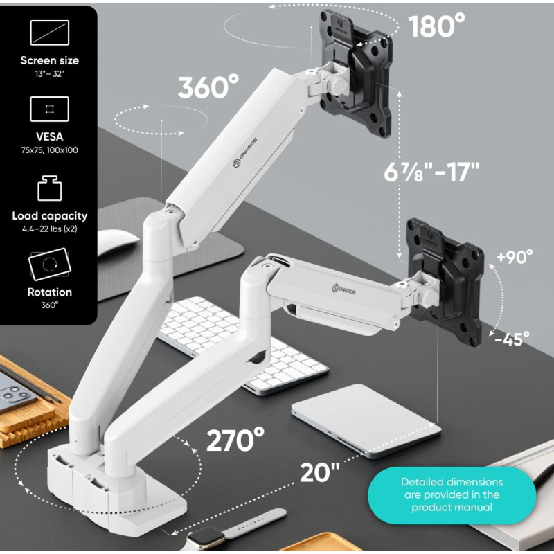 Dual monitor desk mount 13"–32", black & white
