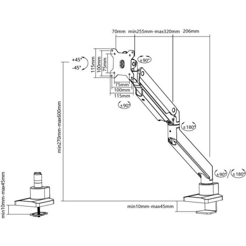 The Neomounts Select NM-D775BLACKPLUS is a tilt-, swivel and rotatable desk mount for curved screens up to 49". This mount is a great choice for space saving placement on desks using a top-fix desk clamp or grommet mount. The NM-D775BLACKPLUS mounts are specifically designed to support curved screens. They feature a strengthened head for curved screens and are designed to support a higher total capacity up to 49" and a maximum weight of 18 kg. Neomounts Select's unique tilt (90°), rotate (180°) and swivel (180°/ 360°) technology allows the NM-PLUS mounts to change to any viewing angle for optimal use of the capabilities of the ultra-wide screen. The mount is equipped with a 180° stop mechanism. The mounts are easily adjustable in height to 59 centimetres, using a gas spring. Additionally, the mounts are also adjustable in depth, from 0 to 63 centimetres. A unique cable management conceals and routes cables from mount to the ultra-wide screen. The NM-D775BLACKPLUS desk mounts are ideal for use in offices, on counters and in reception areas. All installation material is included with the product. Manufacturer Website: https://www.neomounts.com/monitor/desk-mounts/nm-d775blackplus-neomounts-by-newstar-select-monitor-desk-mount/ |
