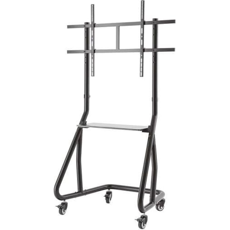 The Neomounts by Newstar floor stand, model NS-M3800BLACK is a mobile floor stand for flat screens up to 100" (254 cm). This mobile stand is a great choice for space saving placement or when wall-, ceiling mounting or desk placement is not an option. This cart stretches your investment by serving a variety of projection needs by sharing a large display over multiple rooms. Get optimal positioning for both standing and seated audiences, in any application, in any part of your location. An innovative cable management conceals and routes cables from mount to flat screen. Hide your cables to keep the stand nice and tidy. Neomounts by Newstars' floor stand, NS-M3800BLACK holds your TV, AV equipment and even hides your cables. The casters allow the stand to move it to where you need it. Easily roll this cart through doorways and over thresholds. The floor stand also comes with four leveling feet. Neomounts by Newstar NS-M3800BLACK is suitable for screens up to 100" (254 cm). The weight capacity of this product is 100 kg. The stand is suitable for screens that meet VESA hole pattern 400x400 to 1000x600mm. All installation material is included with the product.