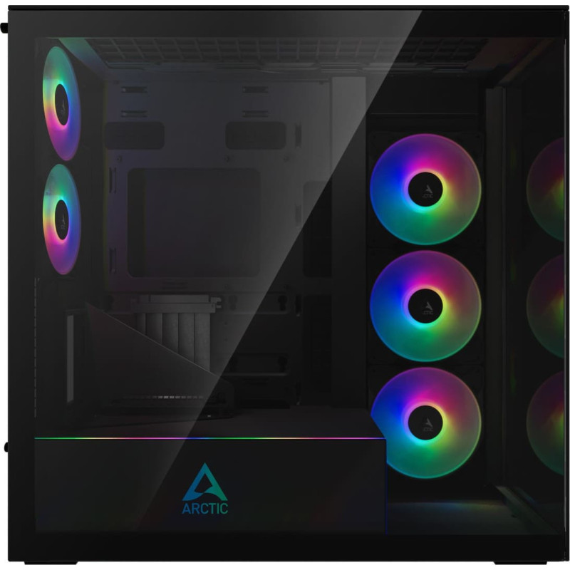 summary: ARCTIC Xtender VG (Mirror Black) Premium E-ATX PC Case with Vertical GPU Mounting. Form factor: Midi Tower, Type: PC, Product colour: Black. Power supply location: Bottom, Supported power supply form factors: ATX. Side fans installed: 3x 140 mm, Side fans diameters supported: 120,140 mm, Rear fans installed: 2x 120 mm. Supported HDD sizes: 2.5,3.5". Width: 231 mm, Depth: 529 mm, Height: 529 mm