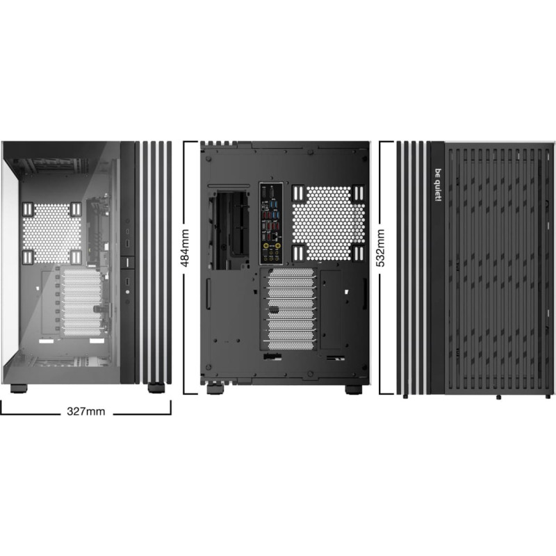 summary: be quiet! LIGHT BASE 900 DX Black. Form factor: Full Tower, Type: PC, Product colour: Black. Supported power supply form factors: ATX, PS2. Side fans diameters supported: 120,140 mm, Rear fans diameters supported: 120,140 mm, Top fans diameters supported: 120,140 mm. Supported HDD sizes: 2.5,3.5". Width: 327 mm, Depth: 532 mm, Height: 484 mm