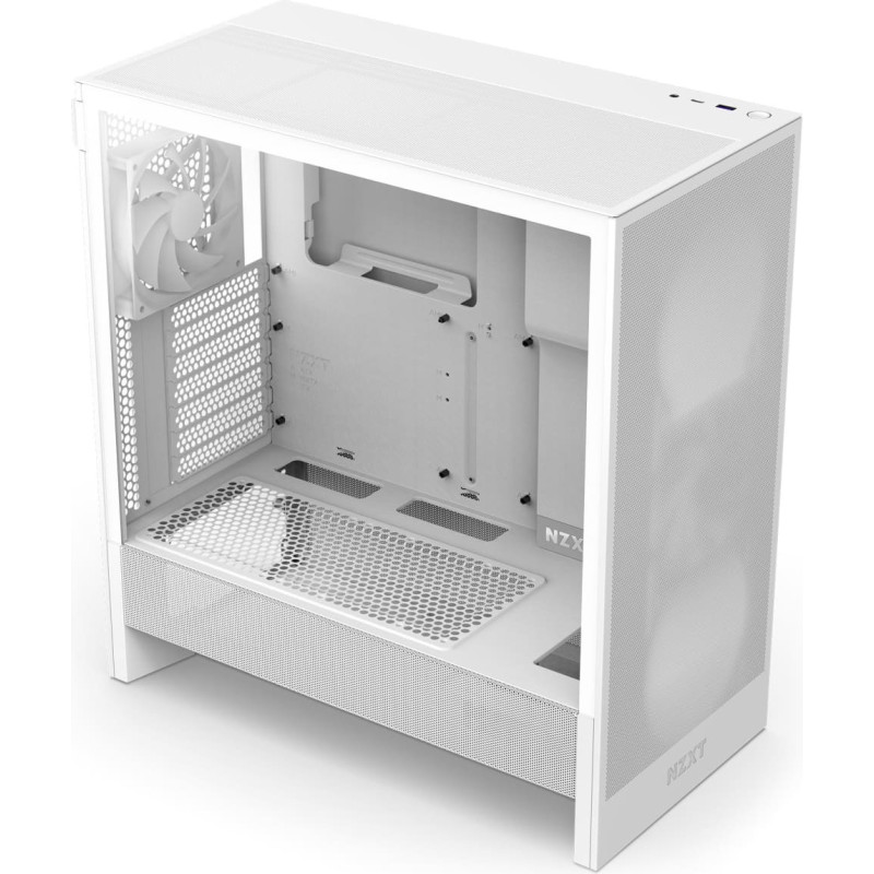 summary: NZXT H5 Flow. Form factor: Midi Tower, Type: PC, Product colour: White. Front fans installed: 1x 120 mm, Front fans diameters supported: 120,140 mm, Rear fans installed: 1x 120 mm. Supported HDD sizes: 2.5,3.5". Width: 225 mm, Depth: 430 mm, Height: 465 mm