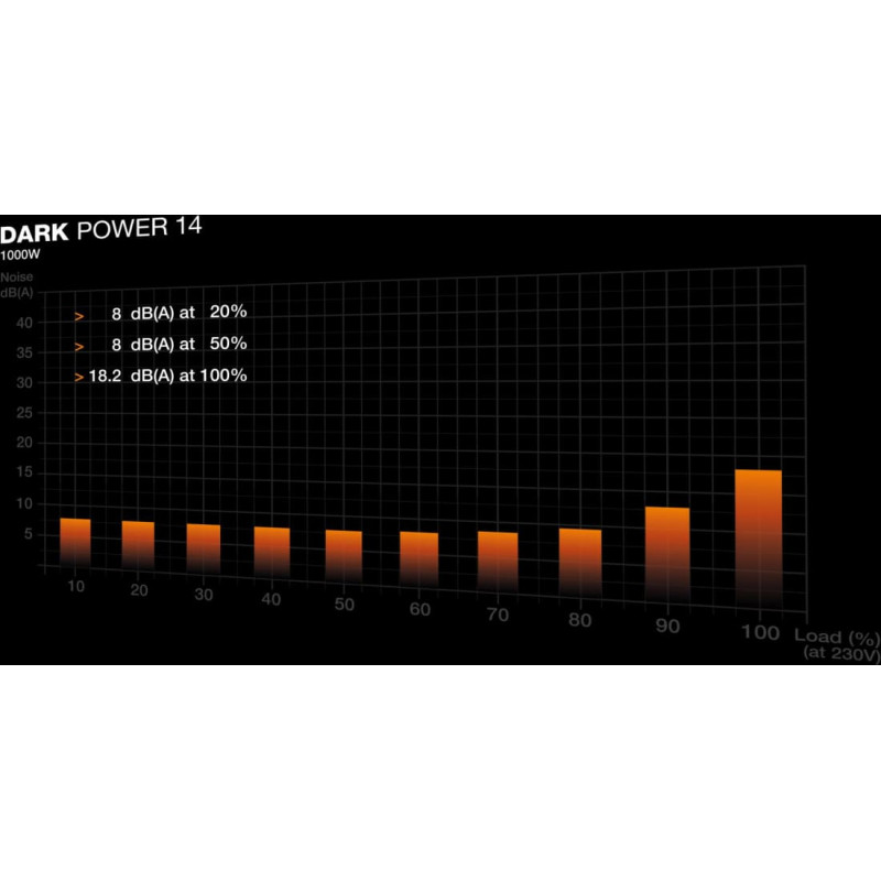 summary: be quiet! Dark Power 14 1200 W - 80 Plus Titanium. Total power: 1200 W, AC input voltage: 100 - 240 V, Peak power: 1300 W. Motherboard power connector: 20+4 pin ATX, Motherboard power cable length: 60 cm, SATA power cable length: 600,750,900,1050 mm. Purpose: PC, Power supply unit (PSU) form factor: ATX, 80 PLUS certification: 80 PLUS Titanium. Product colour: Black, Cooling type: Active, Fan diameter: 13.5 cm. Compliance certificates: CB, Federal Communications Commission (FCC), RoHS, TÜV mark, UKCA, WEEE, cTUVus