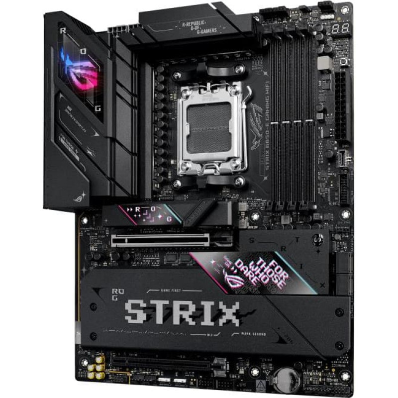 The ROG Strix B850-E Gaming WiFi is engineered to harness the full potential of AMD Ryzen™ 9000 Series processors. Featuring PCIe® 5.0 support, AI Overclocking, AI Networking II, and AEMP, setup is streamlined while performance is maximized. One USB4® Type-C port and WiFi 7 with Realtek 5Gb Ethernet ensure top-tier connectivity, while robust heatsinks keep M.2 drives cool under heavy loads. This motherboard not only meets the demands of gaming and professional applications but also delivers the power and connectivity essential for advanced AI PC applications.