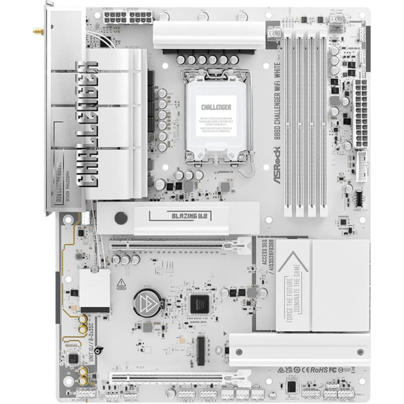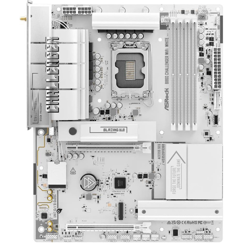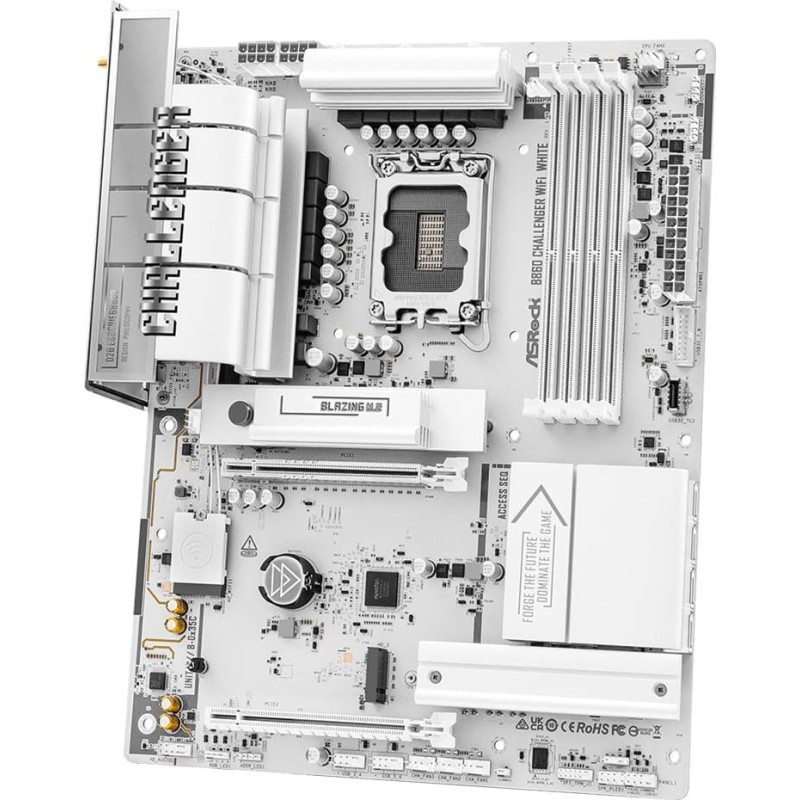 The Challenger Series motherboard represents fearless play, bold breakthroughs, and relentless evolution, delivering robust specs with Wi-Fi 7 and gamer-centric specs. Featuring an elegant design with comprehensively pure white components, it stands as the visual centerpiece for pristine white gaming builds.