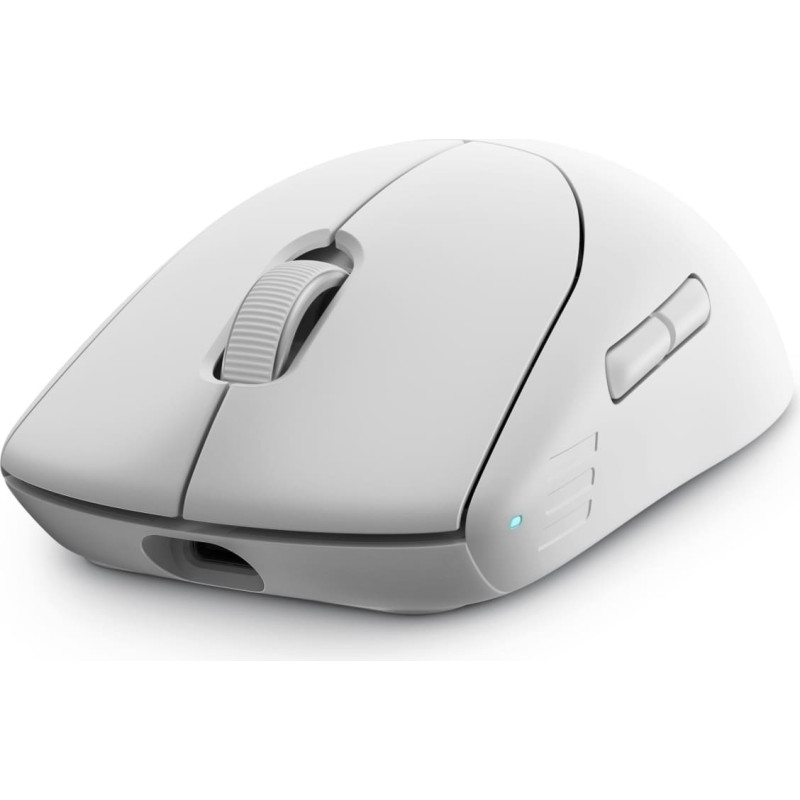 summary: Alienware Pro Wireless Gaming Mouse. Form factor: Ambidextrous. Movement detection technology: Optical, Device interface: RF Wireless + USB Type-C, Movement resolution: 26000 DPI, Response time: 0.25 ms, Buttons quantity: 6, Scroll type: Wheel, Acceleration (max): 50 G. Power source: Batteries. Product colour: White