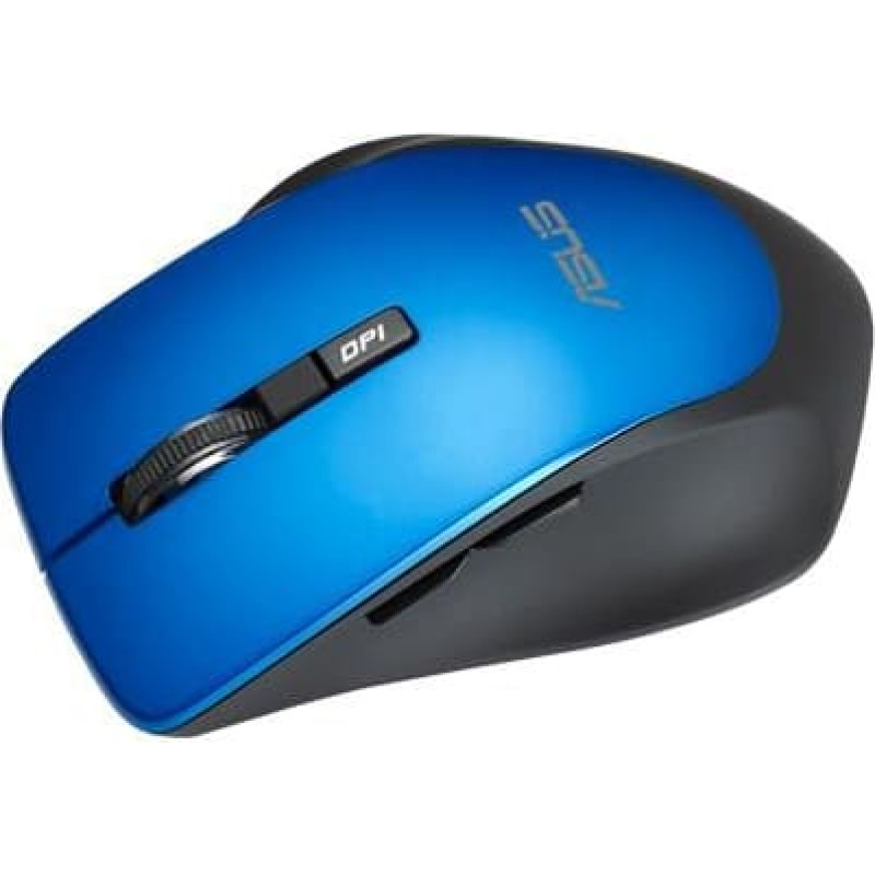 summary: ASUS WT425. Form factor: Right-hand. Movement detection technology: Optical, Device interface: RF Wireless, Movement resolution: 1600 DPI, Buttons type: Pressed buttons, Buttons quantity: 5, Scroll type: Wheel. Power source: Batteries. Product colour: Black, Blue