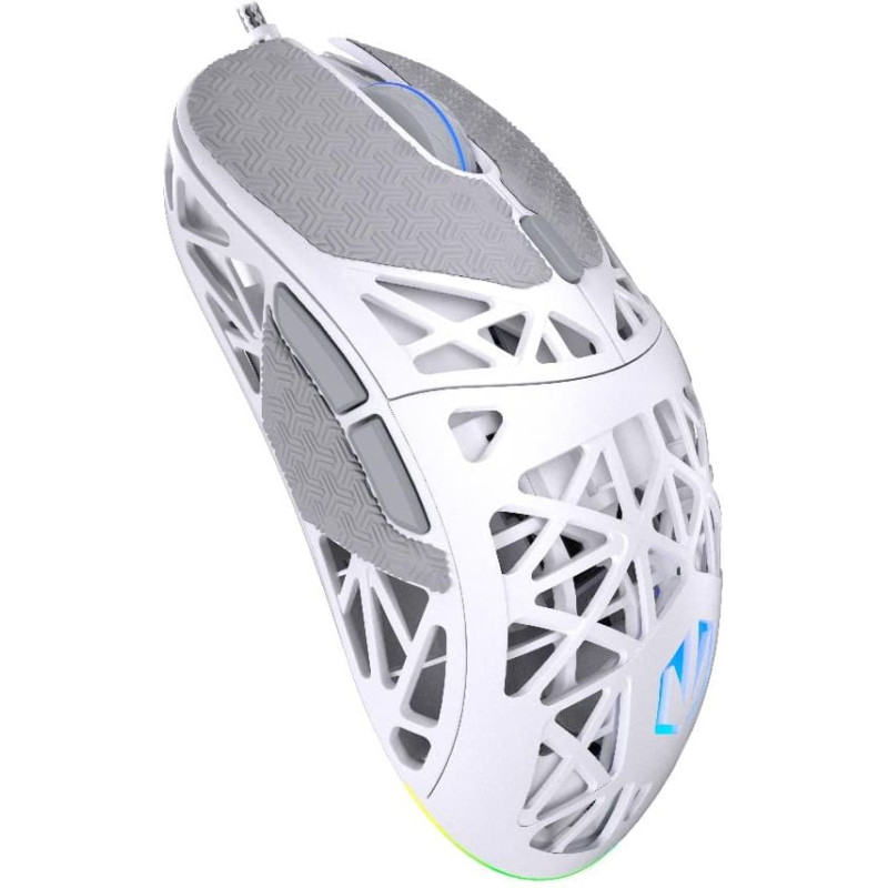 The self-adhesive grip tape, matching the onyx-white housing, grants you a firmer hold of the mouse, which, together with the PTFE feet (a second set included) provides fluid mouse movement. Thanks to this, LIV Onyx White works great even when the clicking gets intensive.