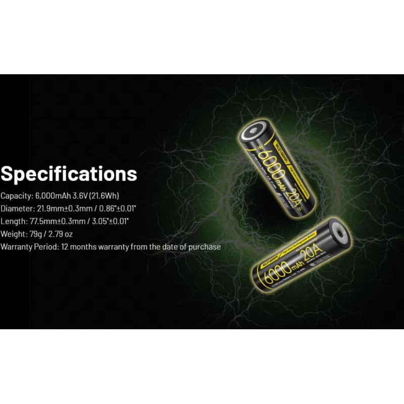 High Capacity: It boasts a substantial 6,000mAh (milliamp-hour) capacity at 3.6V (21.6Wh). This large capacity translates to significantly longer runtimes for compatible devices, particularly high-power flashlights.