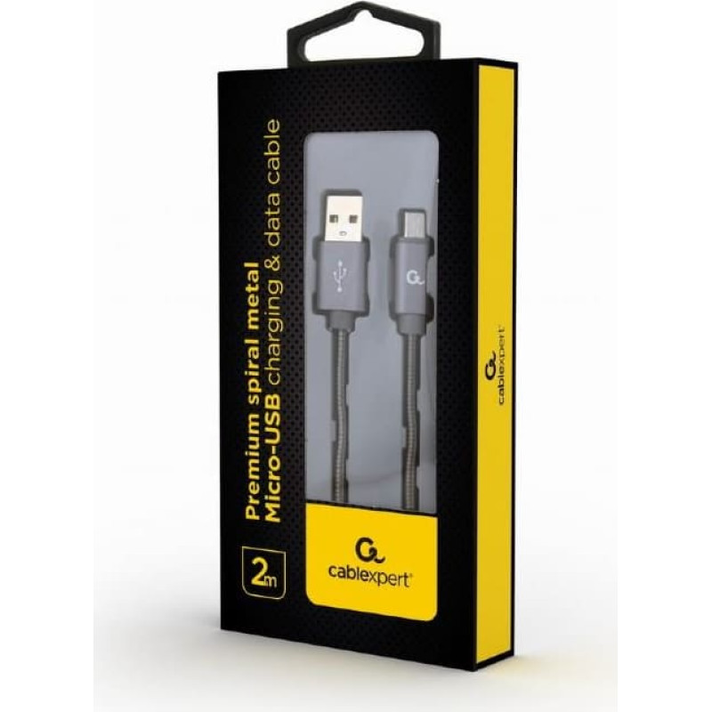 Premium cotton braided Micro-USB charging and data cable, 2 m, metallic-grey