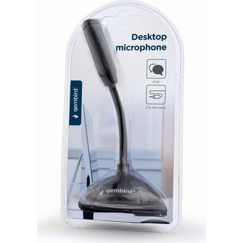 summary: Gembird *Desktop microphone black. Type: PC microphone, Microphone sensitivity: -62 dB, Microphone frequency: 100 - 16000 Hz. Connectivity technology: Wired, Device interface: 3.5 mm (1/8"). Product colour: Black, Cable length: 1.1 m. Microphone weight: 88 g. Package width: 100 mm, Package depth: 175 mm, Package height: 175 mm
