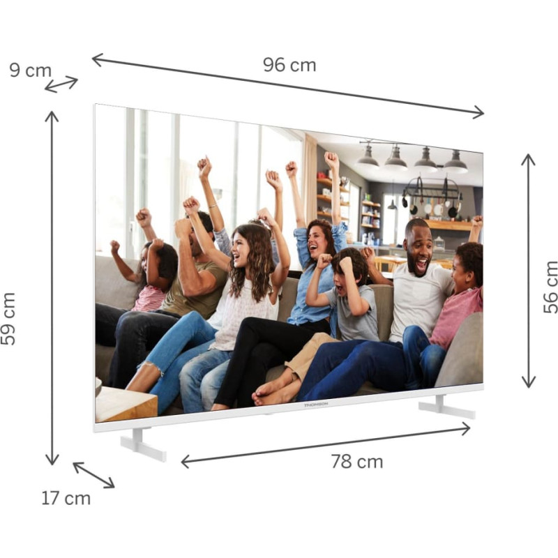 summary: Thomson 43UG4S14W. Display diagonal: 109.2 cm (43"), Display resolution: 3840 x 2160 pixels, HD type: 4K Ultra HD, Display technology: LED, Screen shape: Flat, LED backlighting type: Direct-LED. Smart TV. Contrast ratio (typical): 5000:1, Native aspect ratio: 16:9. Digital signal format system: DVB-C, DVB-S, DVB-S2, DVB-T, DVB-T2. Wi-Fi, Ethernet LAN. Product colour: White