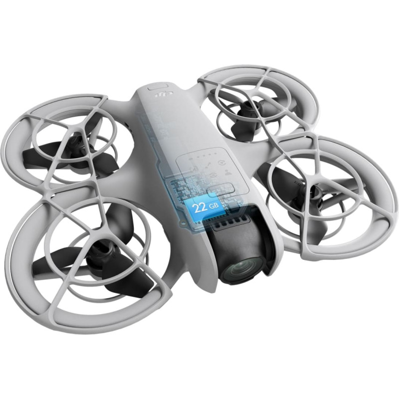 summary: DJI Neo. Number of rotors: 4 rotors. Megapixel (approx.): 12 MP, Maximum video resolution: 3840 x 2880 pixels. Maximum speed: 16 m/s, Maximum operating distance: 7000 m. Battery technology: Lithium-Ion (Li-Ion), Battery capacity: 1435 mAh. Internal memory: 22 GB. Wi-Fi, Wi-Fi standards: 802.11a, 802.11b, 802.11g, Wi-Fi 4 (802.11n), Wi-Fi 5 (802.11ac), Bluetooth, Bluetooth version: 5.1. AC adapter power: 65 W. Product colour: Black, White