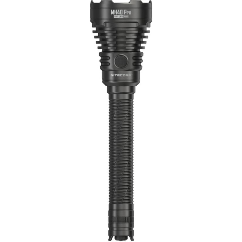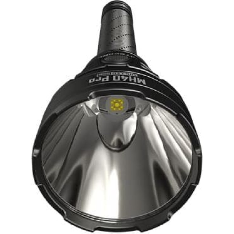 summary: Nitecore MH40 PRO. Flashlight type: Hand flashlight, Product colour: Black. Waterproof up to: 2 m, International Protection (IP) code: IP68. Lamp type: LED, Lamps quantity: 1 lamp(s), Luminous flux: 3500 lm. Charging source: USB, Battery technology: Alkaline/Lithium-Ion (Li-Ion), Battery capacity: 10000 mAh. Width: 256 mm, Weight: 270 g, Head diameter: 6.5 cm