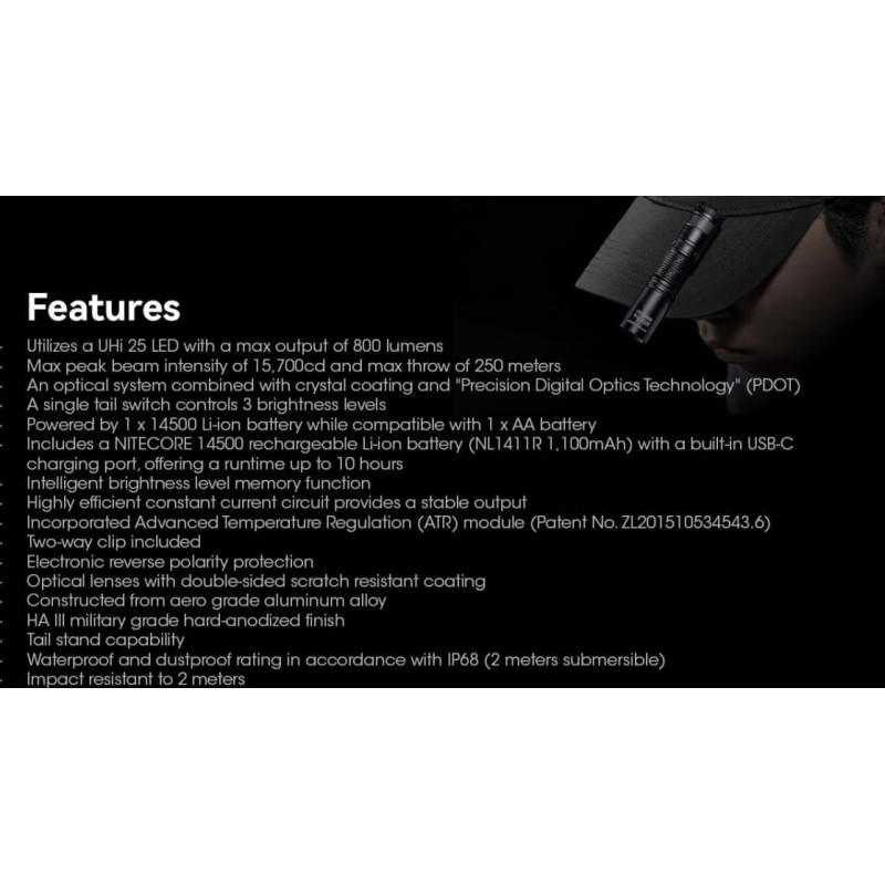 Nitecore FLASHLIGHT MT SERIES/800 LUMENS MT1A PRO NITECORE