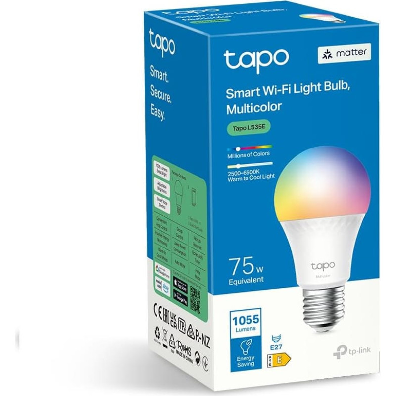 Tp-Link Smart Light Bulb|TP-LINK|Power consumption 8.6 Watts|Luminous flux 1055 Lumen|6500 K|240V|Beam angle 220 degrees|TAPOL535E