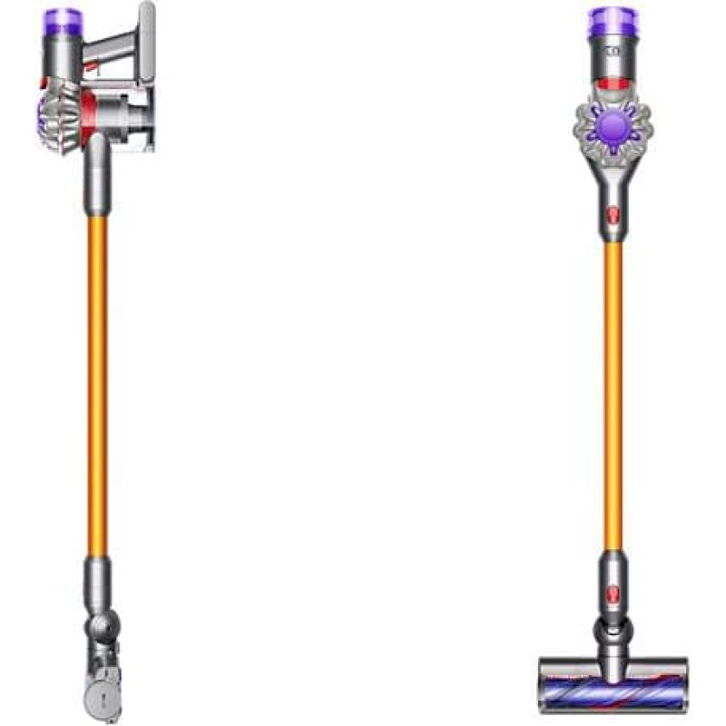 summary: Dyson V8 Absolute. Product type: 2-in-1 stick vacuum, Dust container type: Bagless, Product colour: Silver, Yellow. Cleaning type: Dry, Dirt separating method: Cyclonic, Cleaning surfaces: Carpet, Hard floor. Power source: Battery, Battery voltage: 21.6 V, Runtime: 40 min. Package width: 251 mm, Package depth: 154 mm, Package height: 739 mm. Width: 250 mm, Depth: 224 mm, Height: 1244 mm