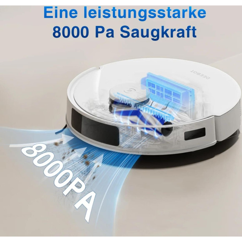 summary: Ecovacs DEEBOT N20. Dust container type: Bagless, Product colour: White, Shape: Round. Dust capacity (total): 0.4 L, Noise level: 65 dB, Water tank capacity: 0.22 L. Battery technology: Lithium-Ion (Li-Ion), Battery capacity: 5200 mAh, Runtime: 300 min. Height: 96 mm, Width: 353 mm, Depth: 351 mm