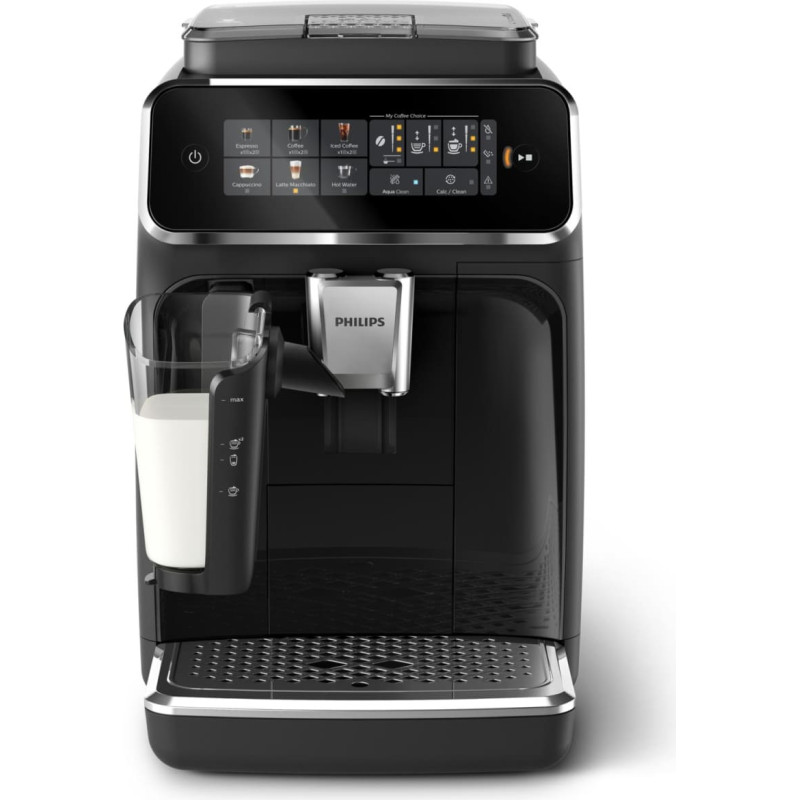 summary: Philips EP3341/50. Product type: Espresso machine, Coffee maker type: Fully-auto, Water tank capacity: 1.8 L, Coffee input type: Coffee beans, Reservoir for brewed coffee: Cup, Number of spouts: 2, Built-in grinder. Display type: TFT. Power: 1500 W